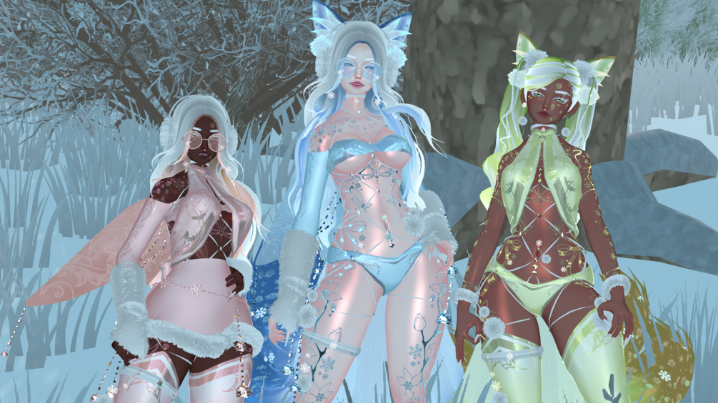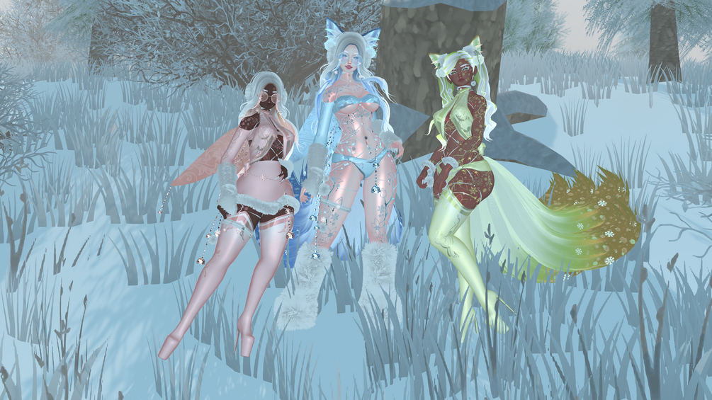 Clothes: Outfit , Ears/Tail , Snowflake Belt , Other Accessories , Skirt , Top , Pasties , Arm Warmers & Fur Boots (couldnt find creator T.T)