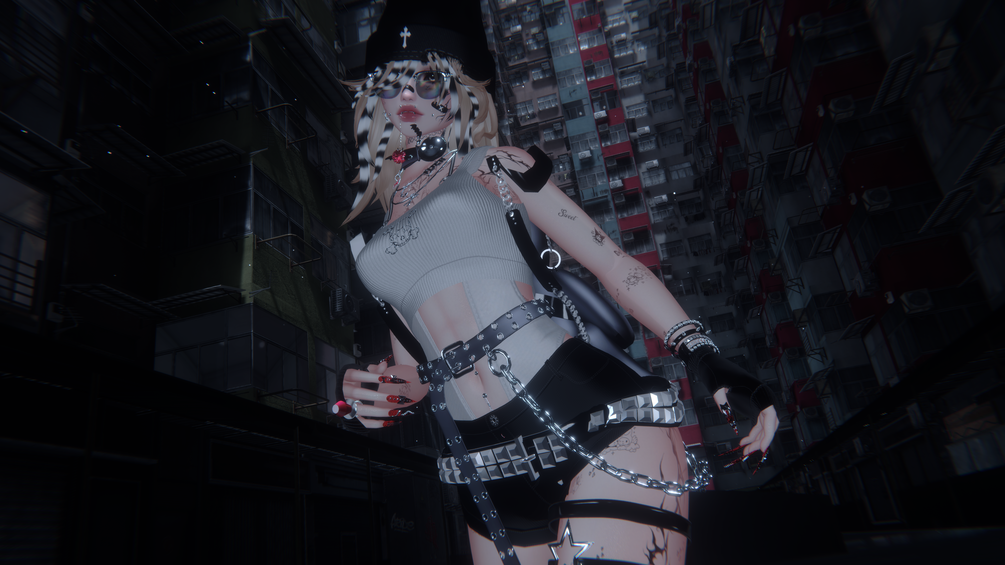 Accessories: Gloves , Ringpop , Studded Belt , Long Belt , Face Piercings/Bandaids , Earrings , Glasses , Pill Tongue Ring , Necklaces , Backpack , Bracelets , Garter , Beanie , Mouth Chain , Body Piercings , Vape , Monster Can , Worm Toy , Breath Particles , Headpat Particles ,